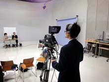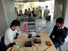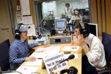 広島FM第一スタジオで収録。生徒たちは,ADの仕事だけでなく,出演もしました。