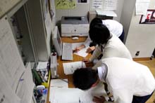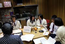 ラジオ局(FMハムスター)の 生放送に参加する生徒 |