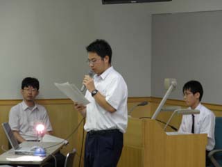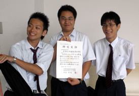 全国大会で発表する本校生徒 | 研究奨励の賞状 |