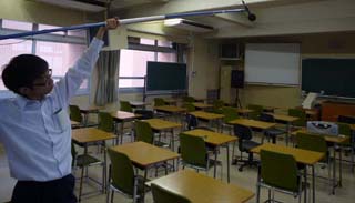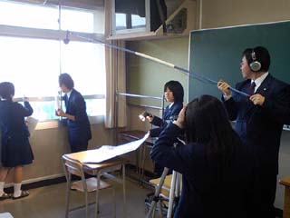 実験をする本校生徒 | 映画撮影でフィッシングポールを実際に使用 |