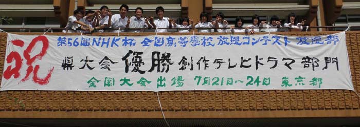 県大会優勝記念(県大会会場校にて) | 全国大会(NHKホール前にて) |
